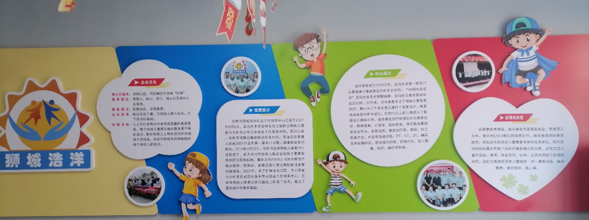 滄州市獅城浩洋社會(huì)工作服務(wù)中心注冊(cè)于2021年6月6日,是滄州市民政局業(yè)務(wù)主管的以殘疾人服務(wù)為主的民辦非企業(yè)社會(huì)工作服務(wù)機(jī)構(gòu)。前身浩洋復(fù)康之家是2001年全市第一家專門開(kāi)展腦癱康復(fù)業(yè)務(wù)的機(jī)構(gòu),2015年5月12日,滄州市浩洋殘疾人康復(fù)中心注冊(cè)成立,成為滄州市殘疾人聯(lián)合會(huì)殘疾兒童康復(fù)救助定點(diǎn)服務(wù)機(jī)構(gòu),每年為約200名0-6歲滄州市戶籍的肢體、孤獨(dú)癥、發(fā)育遲緩兒童提供搶救性康復(fù)訓(xùn)練服務(wù)。2021年,由于殘聯(lián)不能再作為業(yè)務(wù)員主管單位,中心變更為滄州市民政局業(yè)務(wù)主管的社會(huì)工作服務(wù)中心,在原有殘疾人康復(fù)訓(xùn)練的基礎(chǔ)上拓寬了業(yè)務(wù),奠定了更好的社會(huì)服務(wù)基礎(chǔ)。